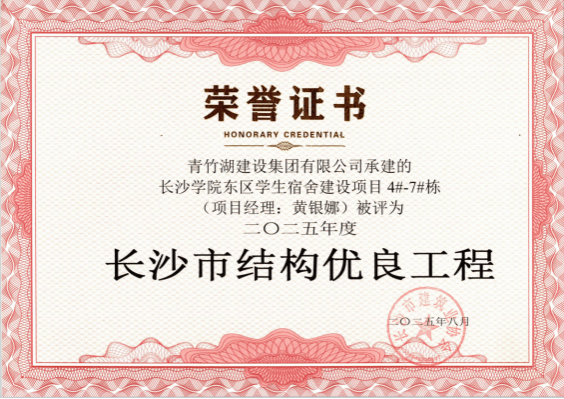 近日,长沙学院校东区学生宿舍建设项目凭借扎实的工程质量点和规范化管理,荣获2025年度“长沙市结构优良工程”奖。